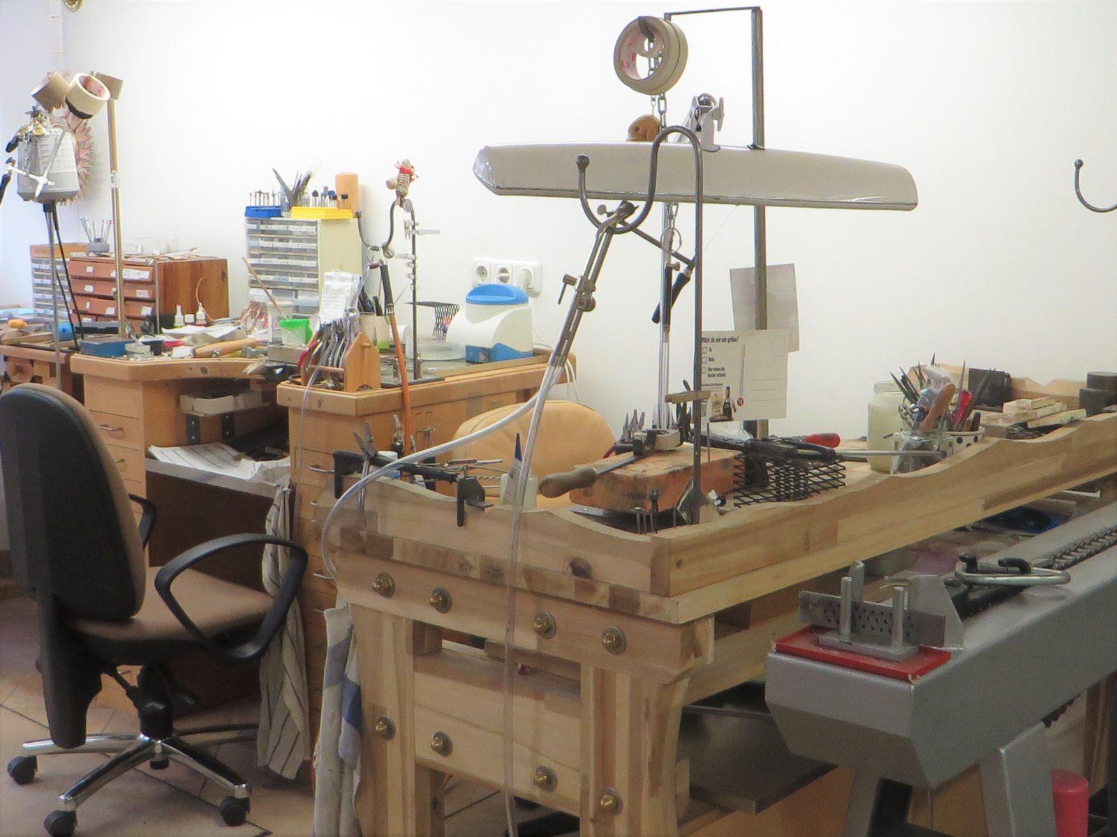 Wir finden, dass wir als ausgebildete Goldschmiedemeister unsere schöne Werkstatt keineswegs vor unseren Kunden verstecken müssen. Im Vergleich zu einem normalen Juwelier, der ausschließlich verkauft, können wir als ausgebildete Fachleute euch vor Ort einen vielfältigen Service bieten.