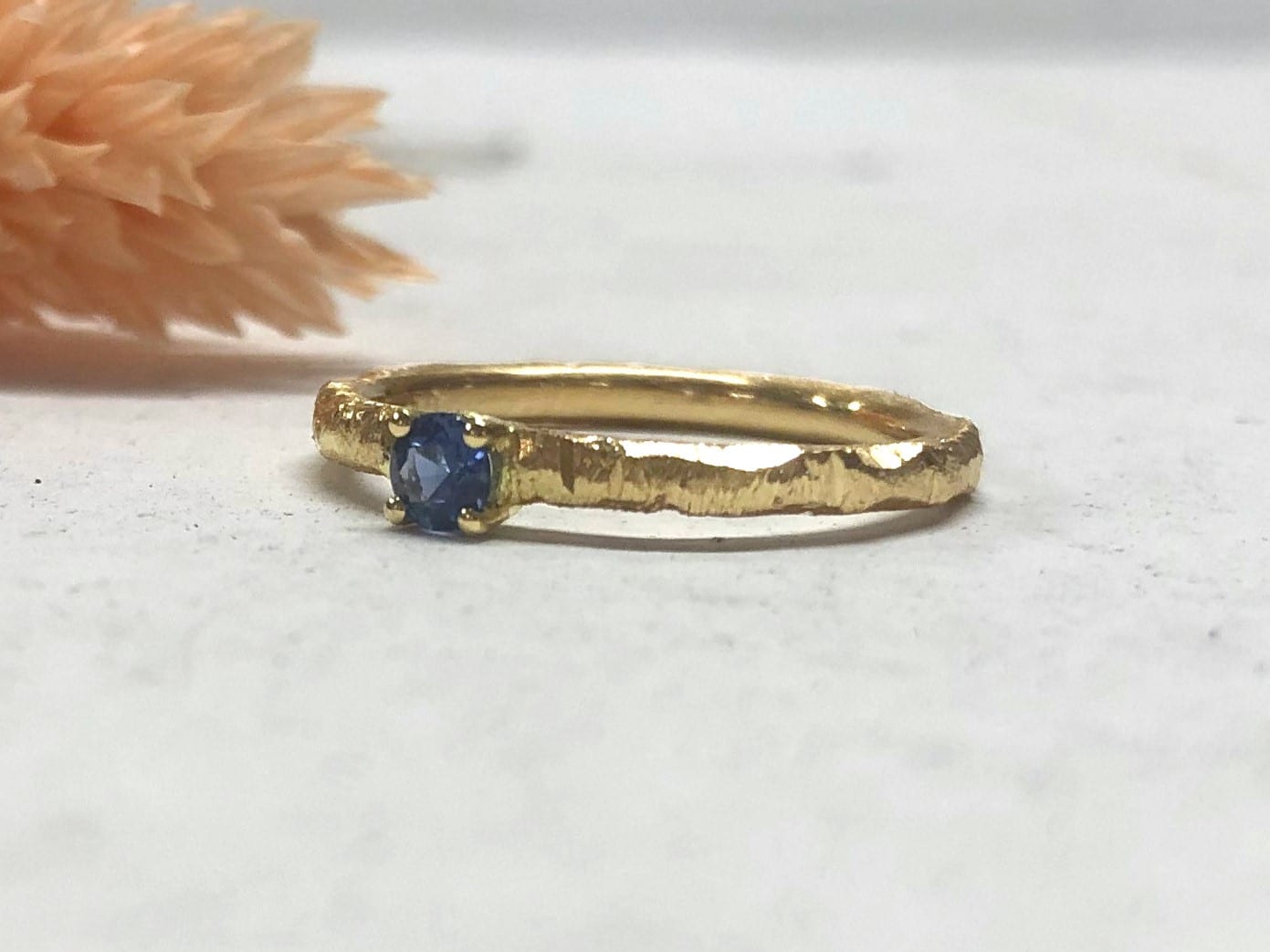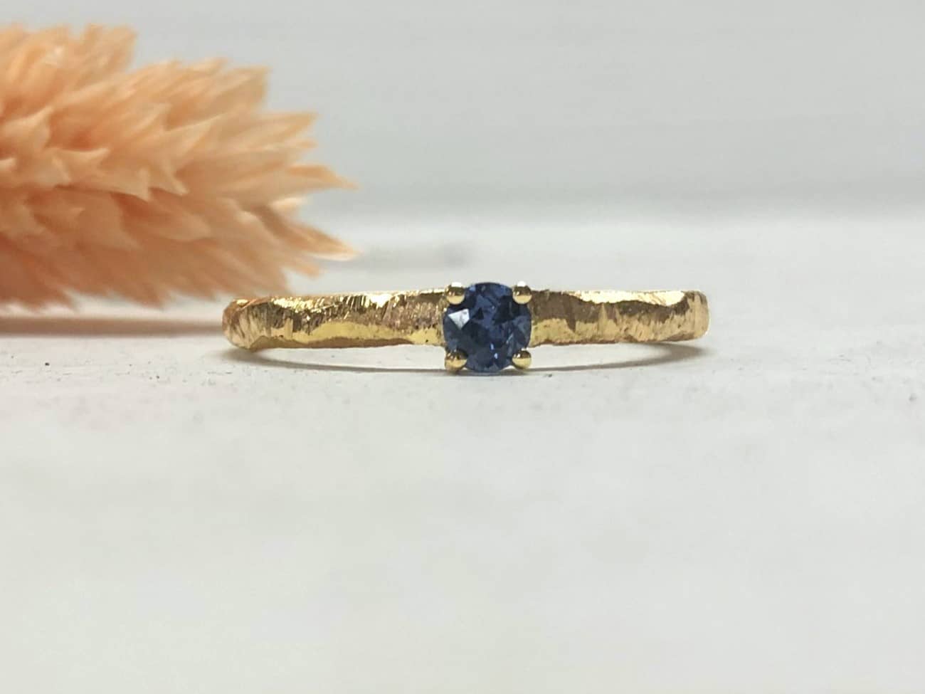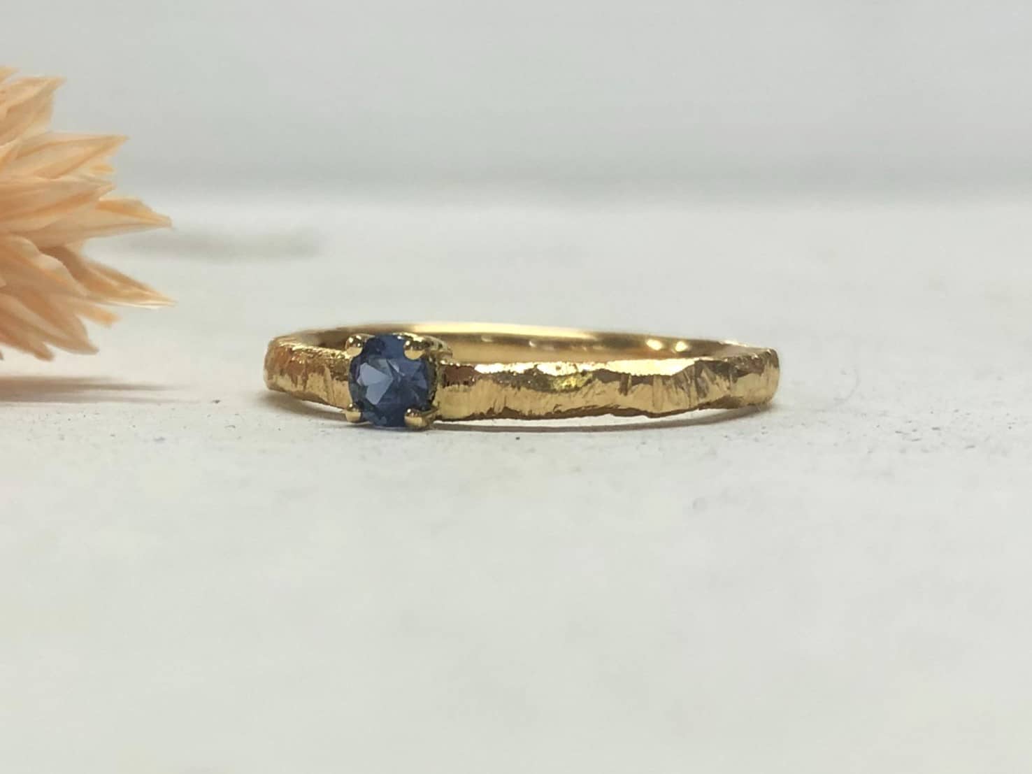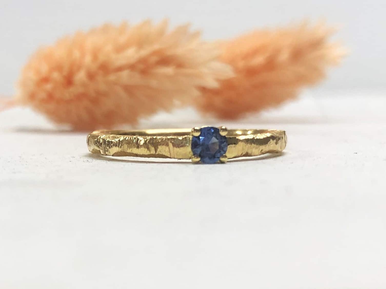Ein geschmiedeter Goldring mit Safir wie Esafira wird auf deine Bestellung hin liebevoll von uns für dich gefertigt. Es stehen zweierlei Edelmetalle zur Auswahl: