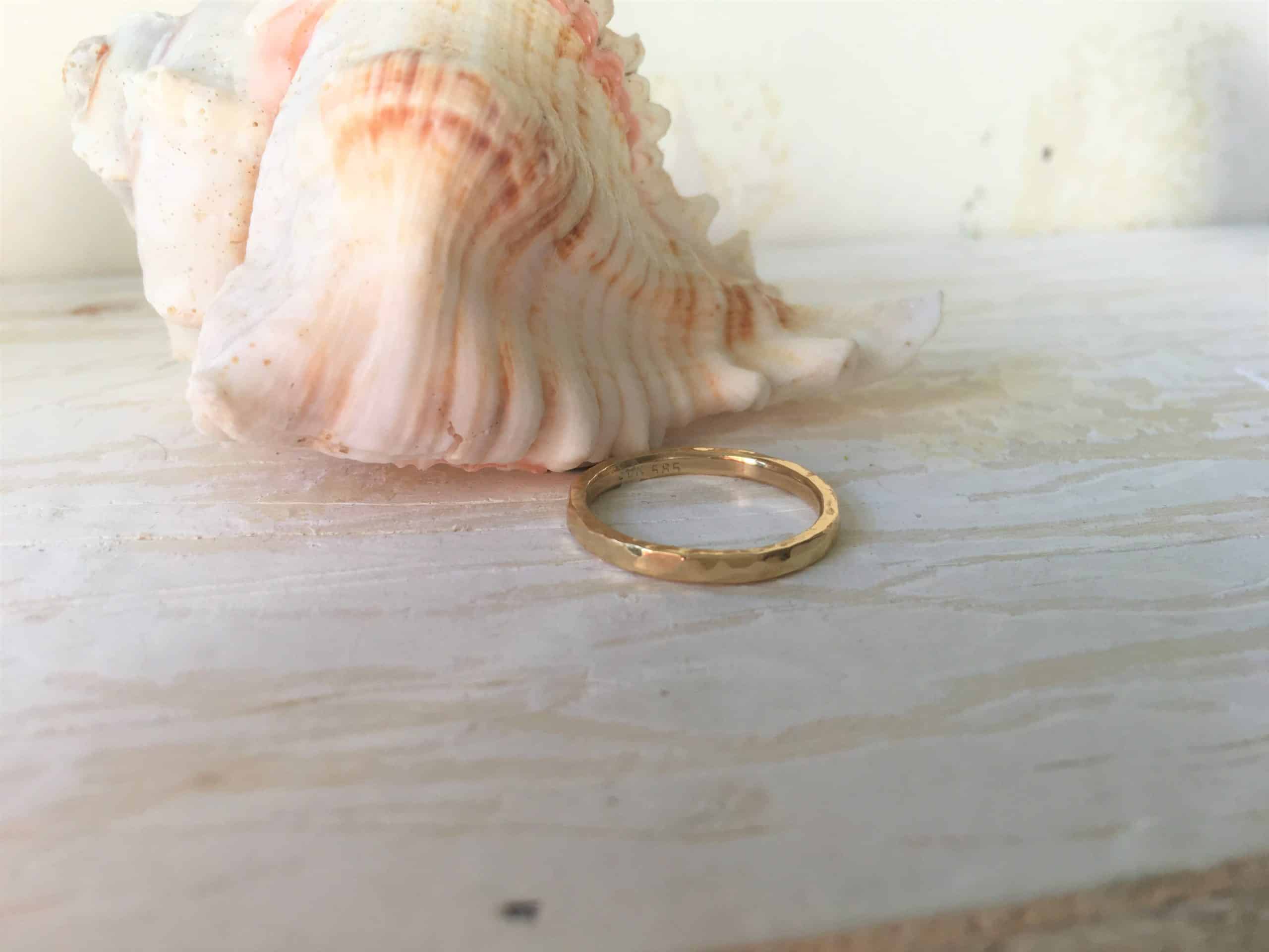 Der Verlobungs- und Damenring Megira ist ein schlichter Gelbgold Verlobungsring mit Hammerschlag ohne Stein.