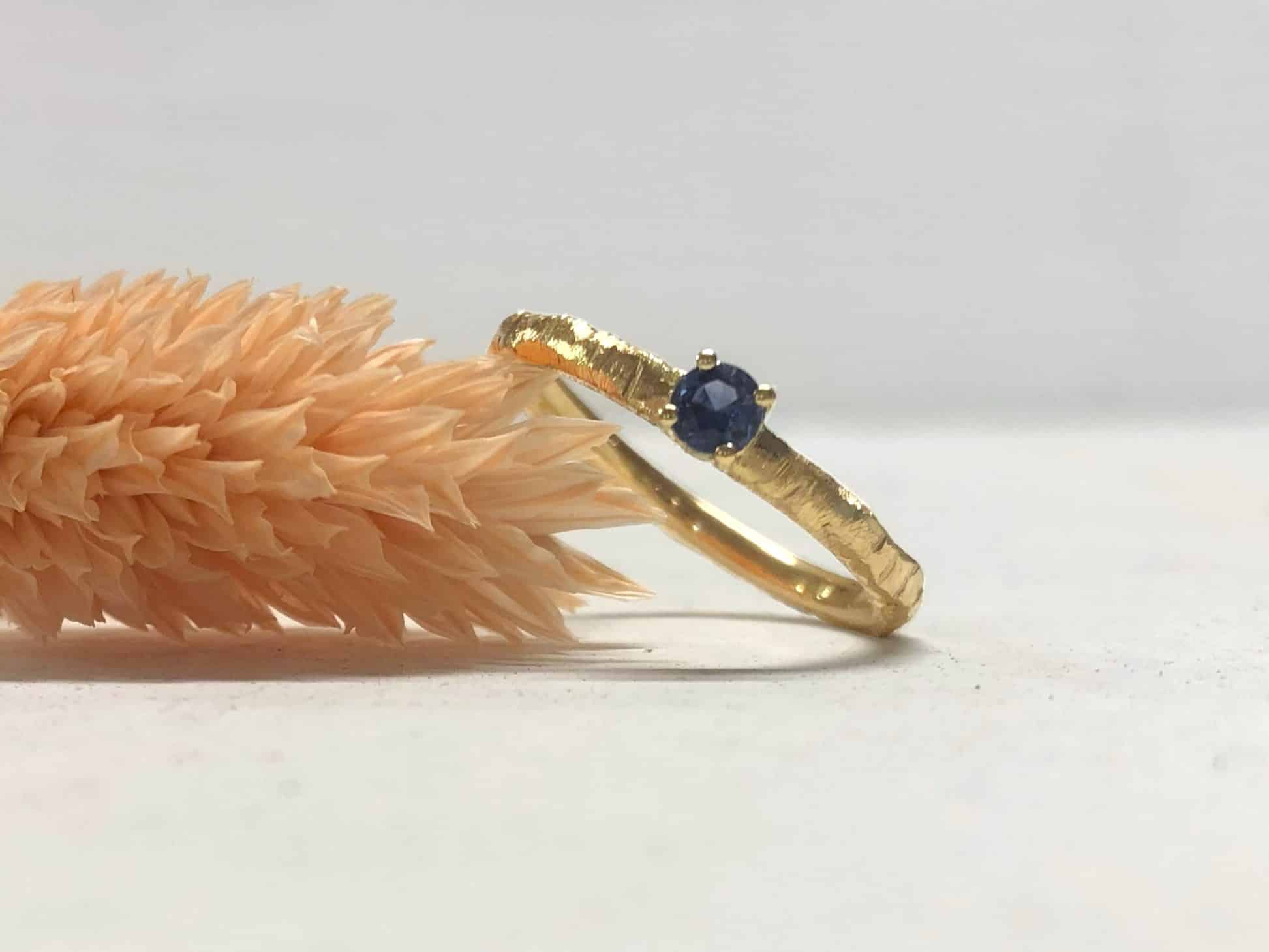 Ein geschmiedeter Goldring mit Safir wie Esafira eignet sich toll als Verlobungsring und zu anderen Anlässen. Der Ring ist exklusiv von uns entworfen, und wird in unserer Goldschmiede liebevoll von Hand gefertigt. Wenn du das Besondere suchst und es trotzdem ein bisschen klassisch sein darf, bist du bei diesem traumhaften Ring richtig.