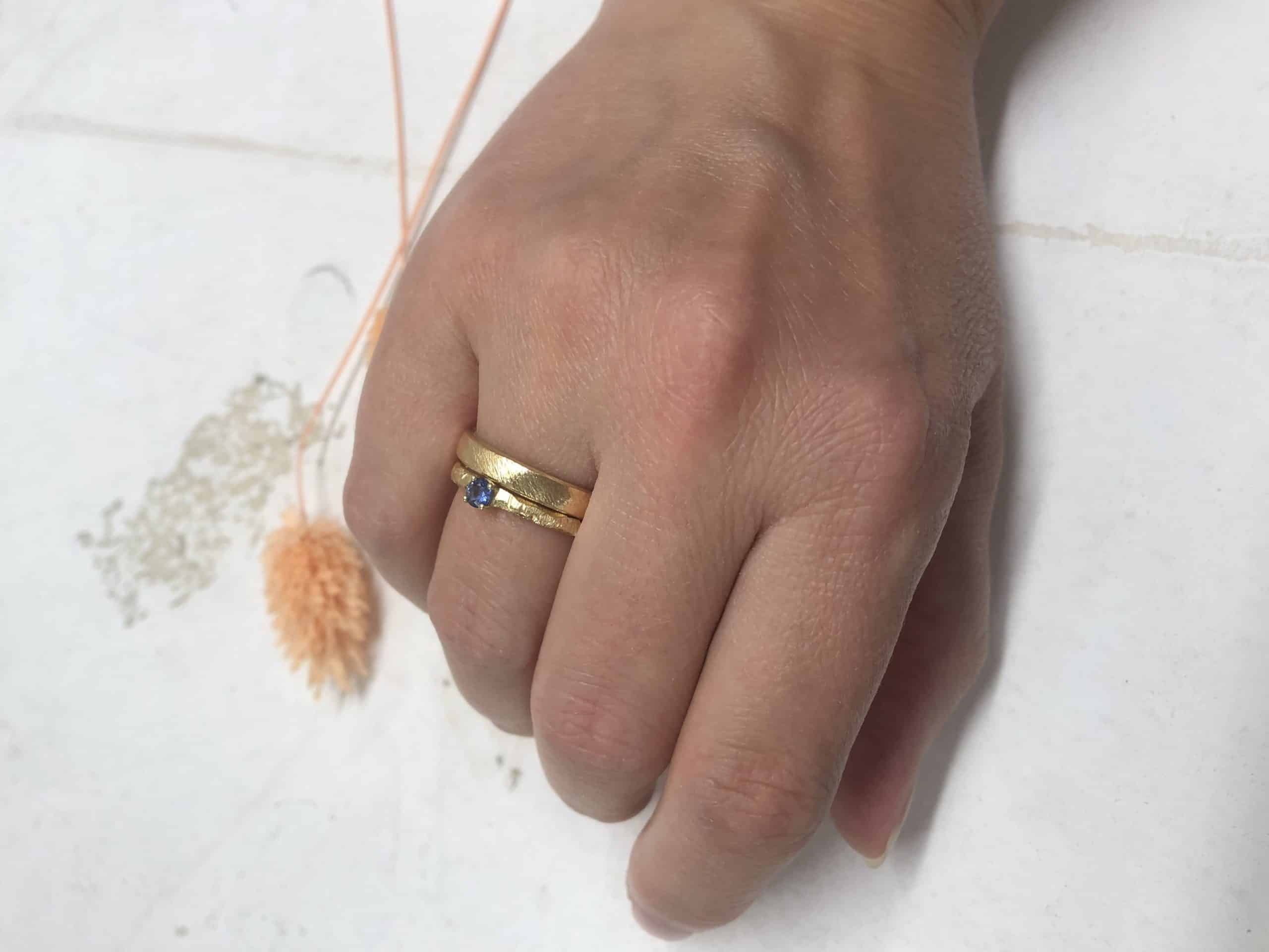 Wenn ein geschmiedeter Goldring mit Safir doch etwas zu auffällig für deinen Geschmack sein sollte, könnte der etwas dezentere Amphritita Safirring für dich in Frage kommen oder aber unser Goldring mit blauem Diamanten Thetes 1.
