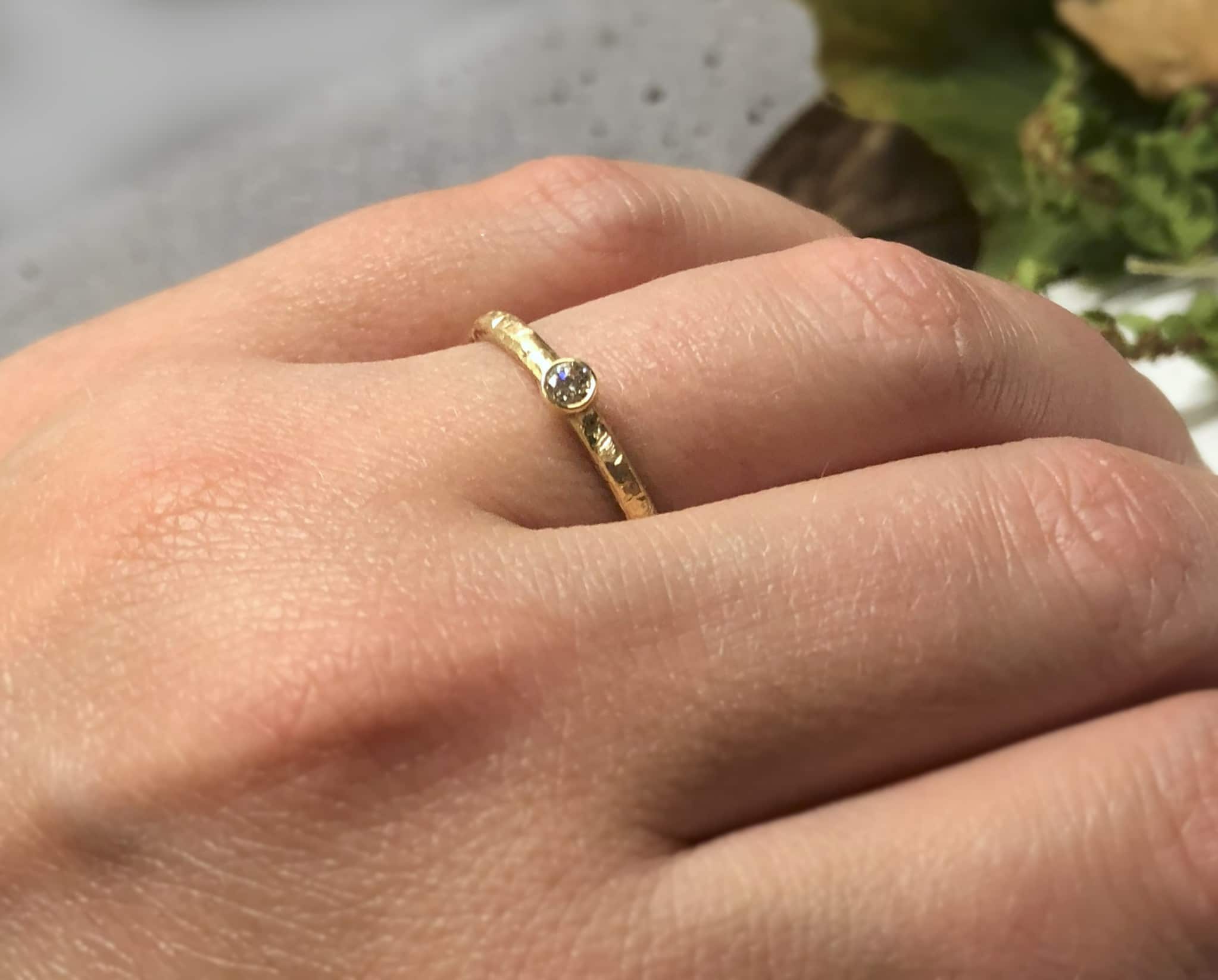 Ein geschmiedeter Vorsteckring mit Stein ist ideal für deine Liebste, wenn sie feinen und filigranen Schmuck mag, bei dem Macken und Tragespuren aber nicht so sehr auffallen.