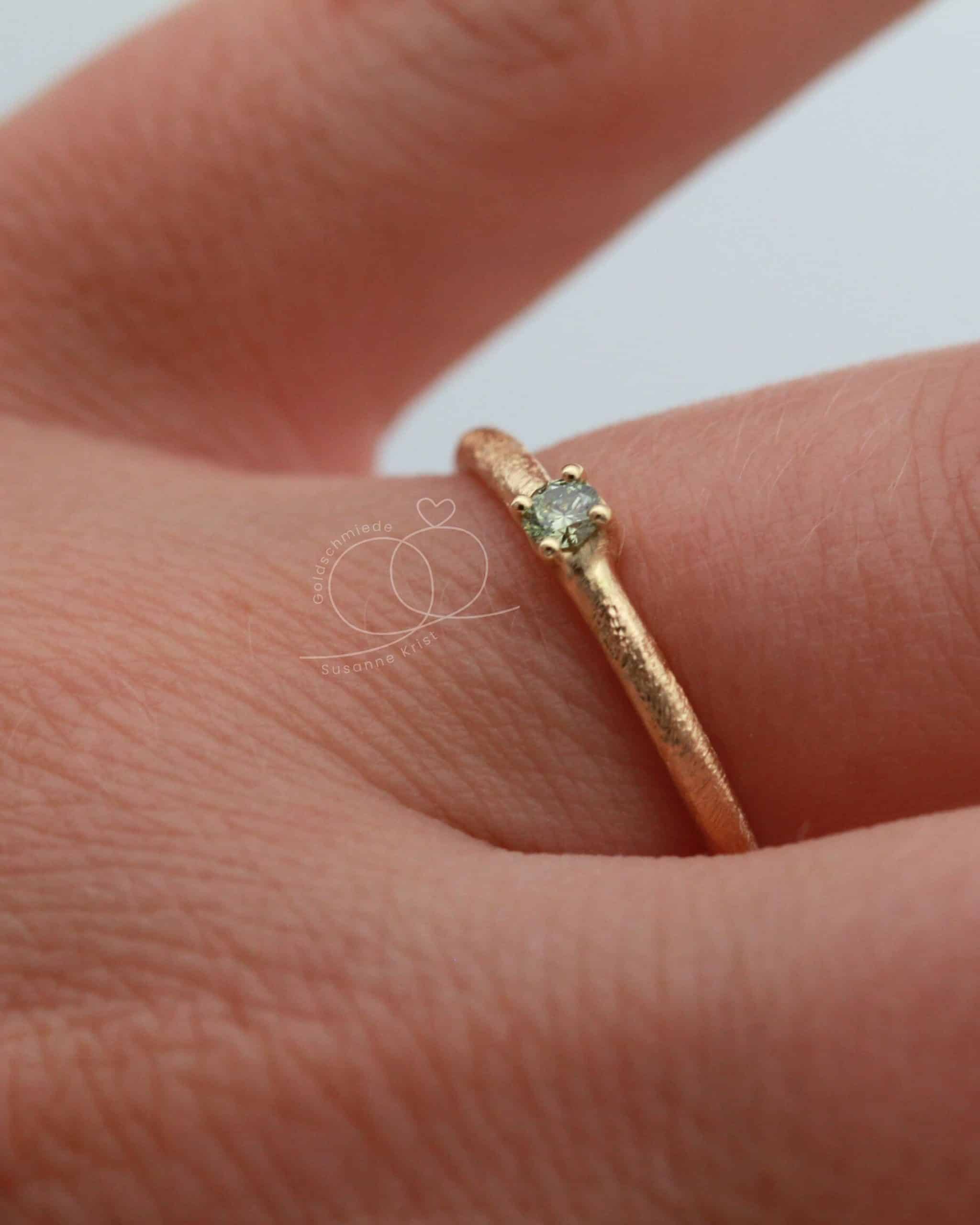 – Natürlicher Verlobungsring trifft grünen Stein.