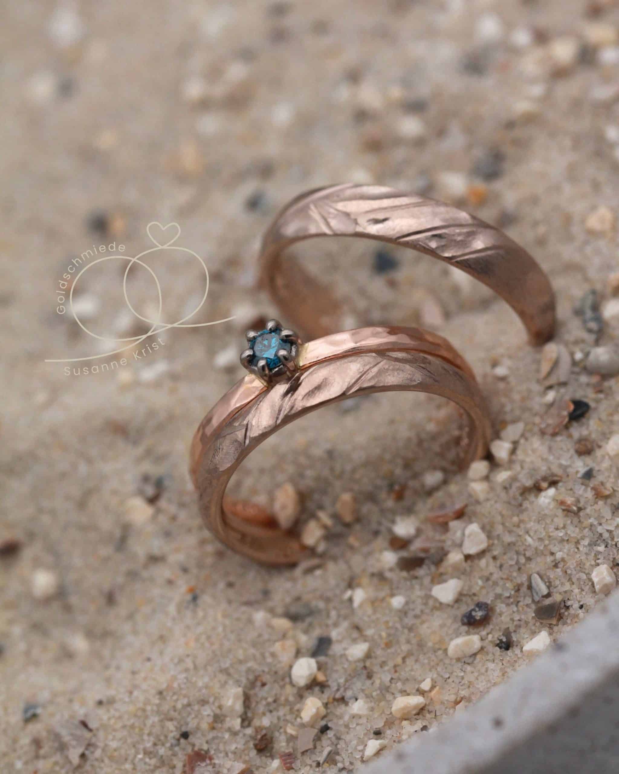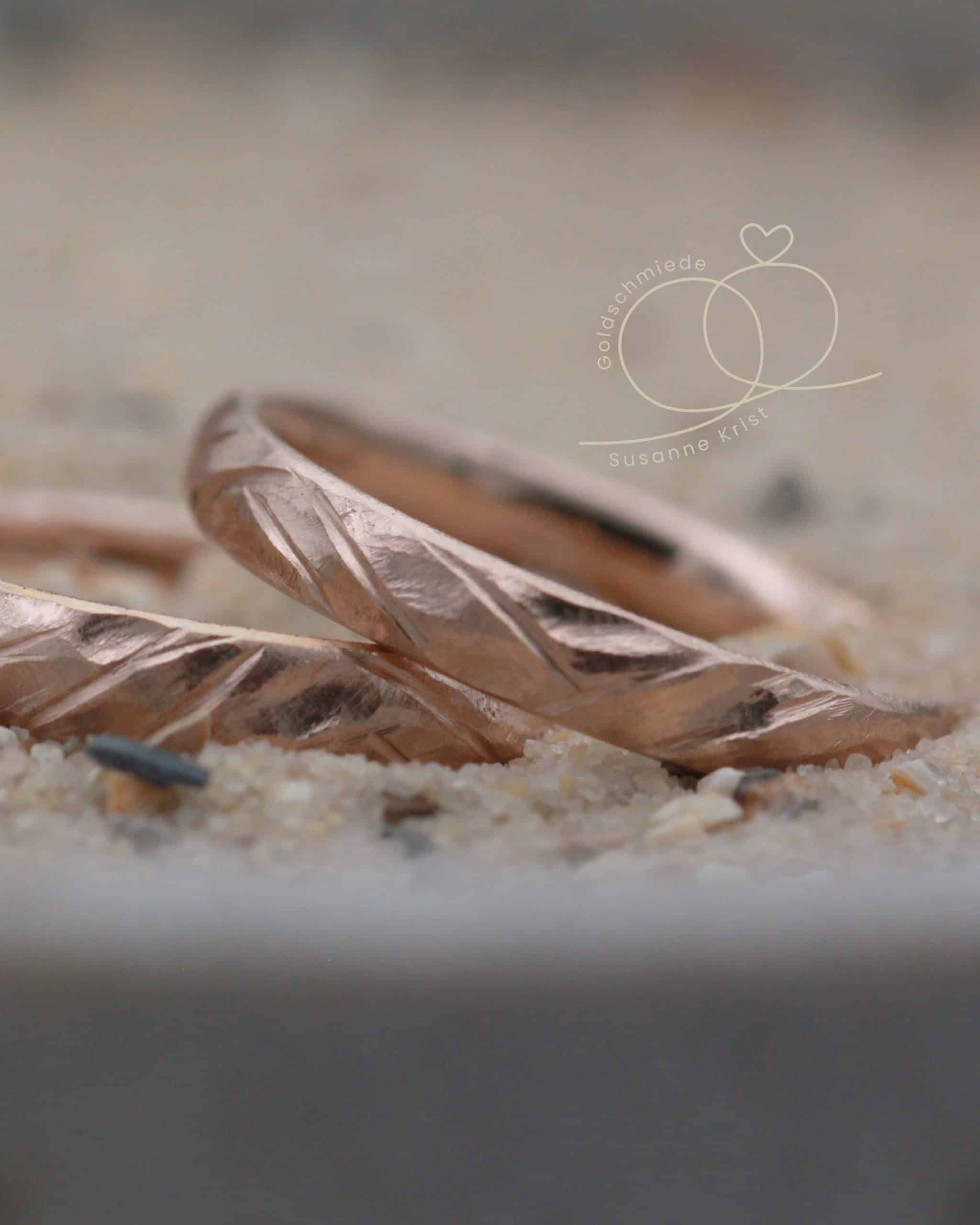 Trauringe mit starker Struktur „Geheime Bucht“ aus Haselnussgold