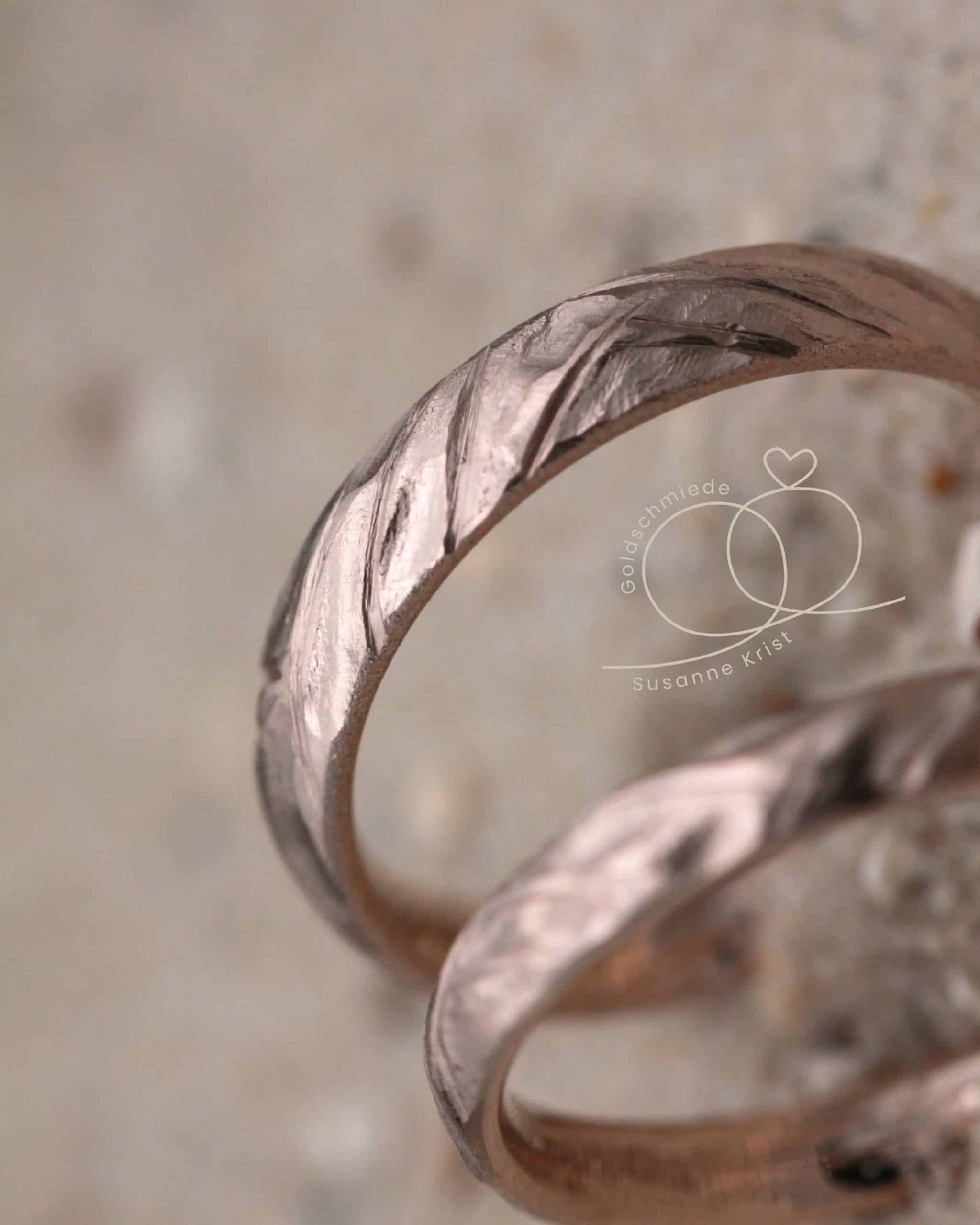 Die Ringe mit starker Struktur werden exklusiv aus nachhaltigen Edelmetallen gefertigt. Direkt von uns aus der Ringmanufaktur.