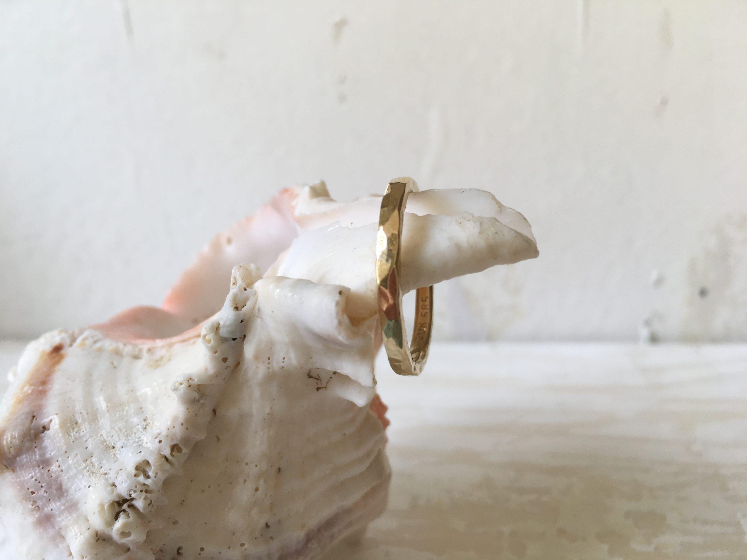 Bei diesem hübschen Ring sieht man eindeutig, dass er handgefertigt ist. Seine Oberfläche ist mit Hammerfacetten gestaltet und hat einen natürlichen, organischen Look. Die Oberfläche glänzt, wodurch die Facetten noch mehr betont werden. Das Hammerschlagmuster ist auch seitlich am Ring zu finden.